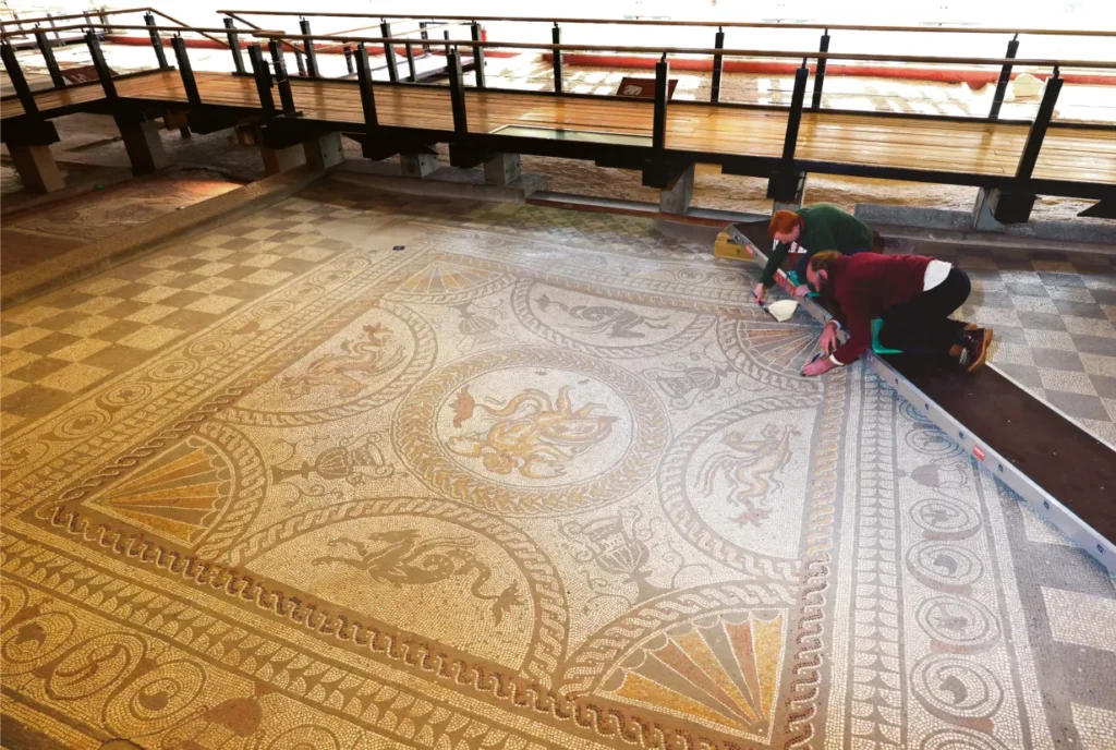 The story of Fishbourne Roman Palace began quite by accident in 1805, when builders laying the foundations for a new house stumbled upon a 13-foot-wide paved surface and fragments of Roman columns. Over the years, local residents continued to uncover pieces of pottery and sections of mosaic flooring, unaware that these were part of a much larger and significant Roman structure lying hidden beneath their feet.